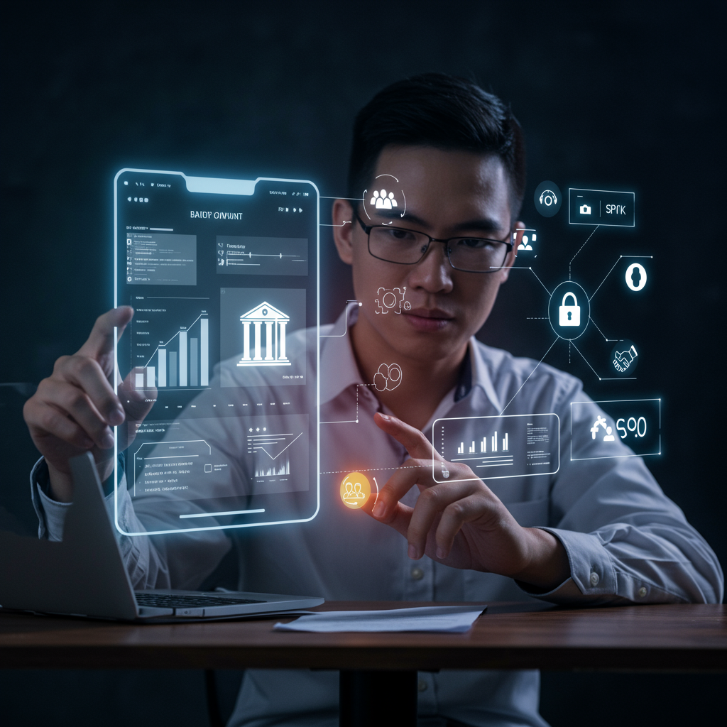 - AI on a computer screen compares the terms of bank deposits in different banks.